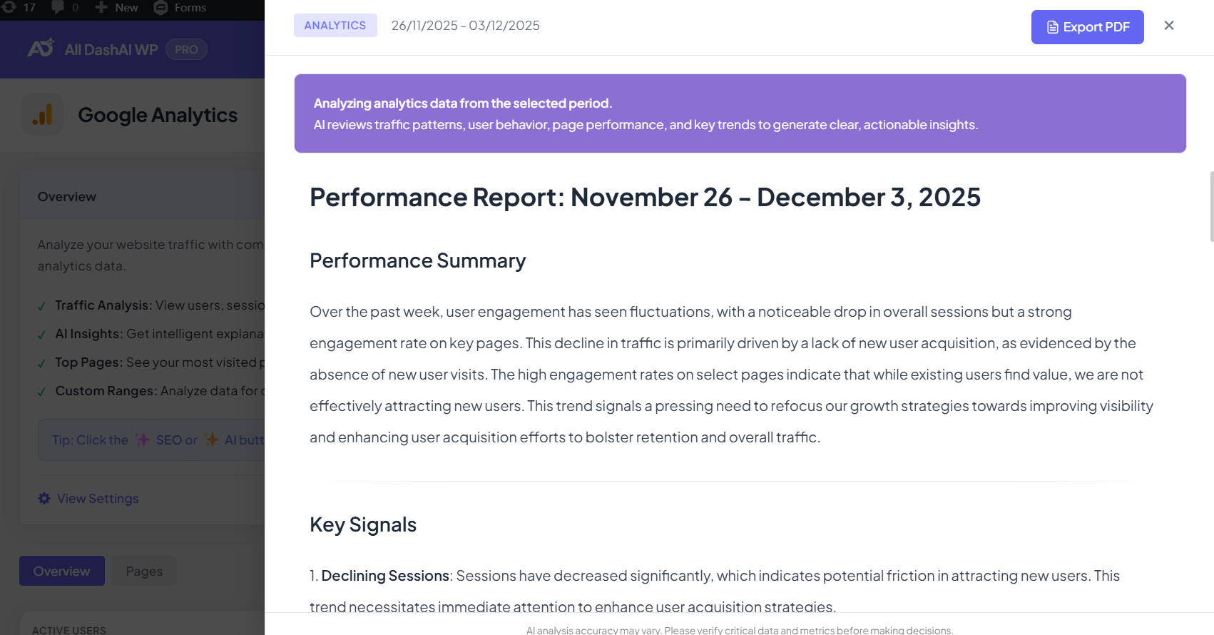This means you must provide your own OpenAI API key to activate AI summaries, insights, and recommendations across the dashboard.